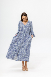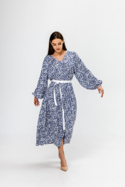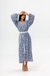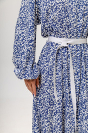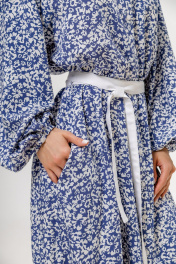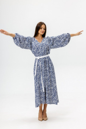 Идеальное платье для летних прогулок, которое подчеркнет женственность и стиль. Платье имеет свободный силуэт с угловым вырезом и застежкой на пуговицы, в боковых швах карманы. Благодаря тонкой струящейся ткани, которая подстраивается под фигуру, делает силуэт изящным. Пышные рукава создают эффек волшебства и легкости. Уникальный крой рукава обеспечивает красивый изгиб руки и сборку на запястье.Длина изделия 134 см. Длина рукава 65 см, длина плеча 10 см. Глубина угла выреза 20 см. Белый акцентный пояс.