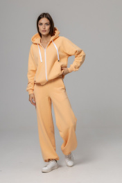 Костюм из футера с велюром( Бомбер с капюшоном + брюки палаццо с фиксатором) выполнен из премиального турецкого футера 3х нитки с велюровым напылением, петля, качество пенье. Невероятная мягкость и пластичность материала -это особенное удовольствие, так как его не хочется снимать. Бомбер на тракторной молнии с рукавом реглан - уникальный фасон, который одинаково хорошо работает и в случае широких и в случае узких плеч, уравновешивая фигуру.Слегка зауженные манжеты на рукаве. Прорезные карманы на передней планке с обеих сторон.Глубокий капюшон красиво окаймляет лицо, не натягиваясь и не заставляя сжимать голову в плечи, в свободном ношении красиво ниспадает сзади. Длина изделия у размера S и М 62 см, у размера L- 68 см. Брюки палаццо тренд этого сезона, они делают образ более стильным. Внизу в брюкх есть резинка-фиксатор, поэтому можно носить брюки прямыми либо затянутыми на резинку( особенно хорошо это в дождливую погоду, так как зафиксирорвав брюки, вы не дадите им загрязниться и вымочиться.Хлопковый шнур в поясе позволяет формировать оъем талии по мере необходимости. Абсолютно универсальное изделие для любого гардероба и стиля. Не образуются катышки на лицевой стороне изделия, цвет зделия остается ярким и насыщенным даже после 50 стирок. Уход за изделием: деликатная стирка с жидким моющим средством при температуре 30-40 градусов. При стирке использовать мягкие моющие средства. не применять отбеливающие средства.