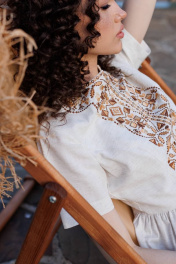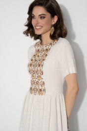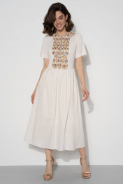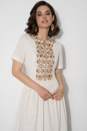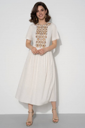 Летнее платье из натуральной ткани - воплощение легкости и элегантности. Оно выглядит невероятно стильно и элегантно, создавая неповторимый образ. Вышивка на этом платье придает ему особый шарм и делает его еще более привлекательным. Это платье идеально подходит для летних дней, когда хочется выглядеть ярко и привлекательно. Платье женское, полуприлегающего силуэта предназначено для повседневной носки в летний период. Платье отрезное по линии талии, на хлопковой подкладке. Перед платья отрезной по линии талии. Верхняя часть переда со средним швом и рельефными швами, выходящими из проймы и идущими до талии. На центральной части лифа переда выполнена декоративная вышивка. По верху среднего шва переда обработан разрез. Нижняя часть переда со сборкой по линии талии. Спинка отрезная по линии талии и со средним швом, в котором обработана застежка на потайную тесьму молнию. Средняя длина платья по спинке - 116 см (±2,0 см), средняя длина рукава - 24,0 см (±2,0 см). Тип ткани: костюмно-плательная. Состав платья: полиэстер - 39%, вискоза - 32%, лен - 29%. Состав подкладки: хлопок - 100%