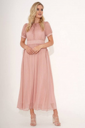 Нарядное платья в пол великолепно подчеркивают все соблазнительные формы и линии, вместе с тем умело скрывают небольшие несовершенства фигуры и делают ее пропорции максимально гармоничными и естественными. А невероятно красивая расцветка в в мелкий горошек поможет сделать Ваш модный образ эффектным и незабываемым. Платье женское на отлетной подкладке из плательной ткани, силуэта песочные часы, отрезное по линии талии с притачным поясом, длинное. Ткань на платье 100% полиэстер - тонкий шифон в мелкий горошек с вкраплениями нитей серебряного цвета. Верхняя часть переда и спинки (лифа) со сборкой в шве притачивания пояса. Перед со средним швом, в верхне части которого расположен разрез с завязкой. Спинка со средним швом, в шве котором обработана застежка на потайную тесьму-молнию и разрез. Вверху разрез застегивается на навесную петлю и пуговицу. Нижняя часть платья (юбка) со сборкой по шву притачивания пояса. По боковым фигурные клинья с отделочной деталью. Рукава втачные одношовные, короткие со сборкой по окату рукава и шву притачных манжет. Горловина круглой формы обтачная. Длина платья по среднему шву спинки до низа - 138,0 см (±3,0 см), Длина рукава платья - 25,0 см (±1,0 см). Тип ткани: блузочно-плательная Состав: полиэстер - 100% Состав подкладки (трикотажная): полиэстер - 100%