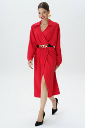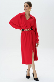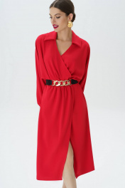 Красное платье с поясом и длиной миди Urs 23-269-1