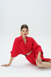 Красное платье с поясом - это классический вариант для создания женственного и элегантного образа. Платье выполнено из качественного материала, который приятен на ощупь и хорошо сидит на фигуре. Пояс подчеркивает талию, делая силуэт более стройным и изящным. Такое платье подойдет для любого случая - от романтического ужина до деловой встречи. Платье может быть как повседневное так и нарядное, в комплект к платью идет съемный пояс (пояс может немного отличаться от того, что на фото). Платье женское со спущенным цельнокроенным рукавом типа “летучая мышь” “на запАх” и резинкой по линии талии. По низу рукава идет сборка и манжет, который застегивается на петлю и пуговицу (фурнитура может незначительно отличаться от фото). Спинка платья со средним швом. Горловина V-образная с отложным воротником, концы воротника острые. Средняя длина платья по середине спинки - см (±3,0 см), Средняя длина рукава с манжетой от горловины - см (±3,0 см). Тип ткани: плательно-блузочная Состав: полиэстер - 96%, спандекс - 4%.