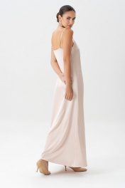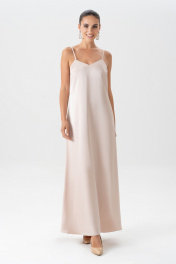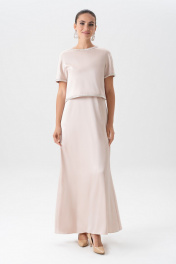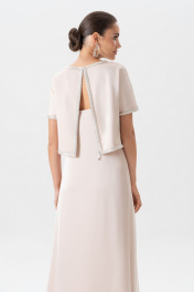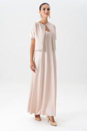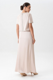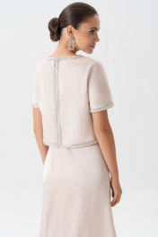 Нарядный женский костюм с платьем от брендов URS — это утончённый праздничный комплект, созданный для тех, кто выбирает изысканность, благородство и проверенную временем классику. Такой вечерний костюм прекрасно вписывается в атмосферу торжества, подчеркивает женственность и обеспечивает комфорт на протяжении всего события. Костюм женский, состоящий из блузона и платья, выполненных из плательной атласной ткани, нарядный. Блузон прямого силуэта, укороченный, с цельнокроеными короткими рукавами, с застежкой по спинке до верха на разъёмную тесьму-молнию с металлическими звеньями. Блузон также можно одевать застежкой на перед. Перед и спинка с цельнокроеным бочком. Рукава цельнокроеные короткие, с притачной нижней частью. Горловина блузона - круглая лодочка, застегивающаяся по спинке на пришивной потайной крючок. Низ переда, спинки и рукавов, горловина, застежка спинки вдоль молнии декорированы отделочной тесьмой из сетки с нашивными бусинами (размер и цвет фурнитуры может незначительно отличаться от фото). Перед, спинка и рукава на подкладке. Платье полуприлегающего силуэта, на бретелях, слегка расклешенное к низу, длинное, на отлетной по низу подкладке. Перед с нагрудными вытачками, выходящими из боковых швов. Верхняя часть переда ˅- образная, углубленная.