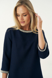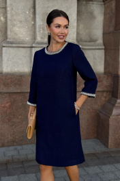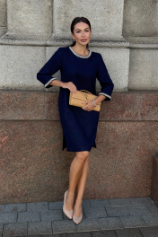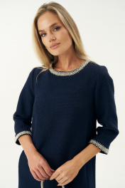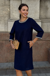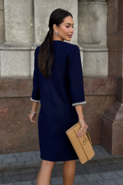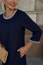 Стильное твидовое платье прямого силуэта — воплощение сдержанной элегантности и утонченного вкуса. Классический оттенок дополняется изысканной отделкой на манжетах и вырезе, что придает образу особую утонченность. Ткань с фактурным плетением подчеркивает качество и премиальность изделия. Удобная длина и свободный крой делают это платье идеальным выбором для деловых встреч, коктейлей или культурных мероприятий. Завершите ансамбль лаконичными аксессуарами и минималистичной обувью, чтобы создать гармоничный и благородный образ. Платье женское прямого силуэта, из костюмной ткани рогожка, на трикотажной подкладке, притачной по низу переда, спинке и низам рукавов. Горловина переда, низа рукавов декорированы отделочной тесьмой, что придает платью нарядный вид (размер и цвет фурнитуры может незначительно отличаться от фото). Перед со смещенными рельефными швами, идущими из пройм до низа, в которых обработан потайной карман в шве. Перед платья с нагрудными вытачками от рельефов, с притачной планкой с отделочной тесьмой по горловине переда. Спинка со средним швом, в верхней части которого обработана застежка на потайную тесьму-молнию. Боковые швы переда и спинки с разрезами от низа по 17,0 см. Горловина переда и спинки круглой формы, обтачная. Рукава втачные, двухшовные, длиной ¾, с притачными планками с отделочной тесьмой по низу рукавов. "46 размер Длина по среднему шву спинки - 96,0 см (±2,0 см), Ширина на уровне глубины проймы - 50,5 см (±1,0 см), Ширина на уровне линии талии - 51,5 см (±1,0 см), Ширина на уровне линии бедер - 54,0 см (±1,0 см), Длина рукава - 47,5 см (±1,0 см), Ширина рукава вверху - 18,0 см (±1,0 см), Ширина рукава внизу - 15,0 см (±1,0 см), Длина плеча - 10,0 см (±0,5 см). 48 размер Длина по среднему шву спинки - 96,0 см (±2,0 см), Ширина на уровне глубины проймы - 52,5 см (±1,0 см), Ширина на уровне линии талии - 53,5 см (±1,0 см), Ширина на уровне линии бедер - 56,0 см (±1,0 см), Длина рукава - 47,5 см (±1,0 см), Ширина рукава вверху - 19,0 см (±1,0 см), Ширина рукава внизу - 15,0 см (±1,0 см), Длина плеча - 10,0 см (±0,5 см). 50 размер Длина по среднему шву спинки - 96,0 см (±2,0 см), Ширина на уровне глубины проймы - 54,5 см (±1,0 см), Ширина на уровне линии талии - 55,5 см (±1,0 см), Ширина на уровне линии бедер - 58,0 см (±1,0 см), Длина рукава - 47,5 см (±1,0 см), Ширина рукава вверху - 20,0 см (±1,0 см), Ширина рукава внизу - 15,0 см (±1,0 см), Длина плеча - 10,0 см (±0,5 см). 52 размер Длина по среднему шву спинки - 96,0 см (±2,0 см), Ширина на уровне глубины проймы - 56,5 см (±1,0 см), Ширина на уровне линии талии - 58,0 см (±1,0 см), Ширина на уровне линии бедер - 61,0 см (±1,0 см), Длина рукава - 47,5 см (±1,0 см), Ширина рукава вверху - 21,0 см (±1,0 см), Ширина рукава внизу - 16,5 см (±1,0 см), Длина плеча - 10,5 см (±0,5 см). 54 размер Длина по среднему шву спинки - 96,0 см (±2,0 см), Ширина на уровне глубины проймы - 58,5 см (±1,0 см), Ширина на уровне линии талии - 60,0 см (±1,0 см), Ширина на уровне линии бедер - 63,0 см (±1,0 см), Длина рукава - 47,5 см (±1,0 см), Ширина рукава вверху - 21,5 см (±1,0 см), Ширина рукава внизу - 16,5 см (±1,0 см), Длина плеча - 10,5 см (±0,5 см). 56 размер Длина по среднему шву спинки - 96,0 см (±2,0 см), Ширина на уровне глубины проймы - 60,5 см (±1,0 см), Ширина на уровне линии талии - 62,0 см (±1,0 см), Ширина на уровне линии бедер - 65,0 см (±1,0 см), Длина рукава - 47,5 см (±1,0 см), Ширина рукава вверху - 22,0 см (±1,0 см), Ширина рукава внизу - 16,5 см (±1,0 см), Длина плеча - 10,5 см (±0,5 см). "