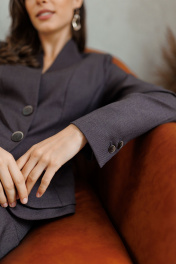 Женский юбочный шерстяной костюм – это стильный и практичный выбор для любой женщины. Выполненный в классическом стиле, он сочетает в себе элегантность и комфорт. Этот костюм станет незаменимым элементом вашего гардероба и поможет вам выглядеть стильно и уверенно в любой ситуации. Костюм женский из костюмно-плательной ткани, состоит из жакета полуприлегающего силуэта и юбки. Костюм на подкладке, предназначен для повседневной носки. Жакет женский с центральной бортовой застёжкой на 2 петли и пуговицы и с цельнокроеным воротником стойкой (фурнитура может отличаться от фото!). Перед жакета с овальным рельефным швом, выходящим из проймы и идущим до низа, и отрезным бочком. Ниже уровня талии обработан наклонный карман в рамку с клапаном фигурной формы. По низу жакета обработана отлетная баска. Низ борта закругленной формы. Спинка со средним швом, отрезными бочками и рельефными швами, идущими от плечевого шва до подреза по линии талии. Низ спинки с отлетной баской. Рукава втачные двухшовные, длинные. По низу локтевого шва обработана шлица, которая застегивается на 2 петли и пуговицы. Вырез горловины V-образной формы, переходящий в стройку по спинке. Юбка на притачной подкладке, с фигурной кокеткой по переду и спинке, застегивается на тесьму-молнию в левом боковом шве. Верхний край юбки обработан обтачкой. Заднее полотнище юбки с 2-я отлетными шлицами. " 44 размер Жакет: Длина по среднему шву спинки - 57,0 см (±2,0 см), Длина жакета по среднему шву спинки до талии - 39,5 см (±1,0 см), Ширина на уровне глубины проймы - 47,0 см (±1,0 см), Ширина на уровне линии талии - 42,0 см (±1,0 см), Длина рукава - 58,0 см (±1,0 см), Ширина рукава вверху - 16,5 см (±1,0 см), Ширина рукава по низу - 12,0 см (±0,5 см), Длина плеча - 12,5 см (±0,5 см). Юбка: Длина юбки по среднему шву спинки - 61,0 см (±1,0 см), Ширина юбки по верхнему краю обтачки - 38,0 см (±1,0 см), Ширина на уровне линии бедер - 48,0см (±1,0 см). 46 размер Жакет: Длина по среднему шву спинки - 57,0 см (±2,0 см), Длина жакета по среднему шву спинки до талии - 39,5 см (±1,0 см), Ширина на уровне глубины проймы - 49,0 см (±1,0 см), Ширина на уровне линии талии - 44,0 см (±1,0 см), Длина рукава - 58,0 см (±1,0 см), Ширина рукава вверху - 17,0 см (±1,0 см), Ширина рукава по низу - 12,0 см (±0,5 см), Длина плеча - 12,5 см (±0,5 см). Юбка: Длина юбки по среднему шву спинки - 61,0 см (±1,0 см), Ширина юбки по верхнему краю обтачки - 40,0 см (±1,0 см), Ширина на уровне линии бедер - 50,0см (±1,0 см). 48 размер Жакет: Длина по среднему шву спинки - 57,5 см (±2,0 см), Длина жакета по среднему шву спинки до талии - 40,0 см (±1,0 см), Ширина на уровне глубины проймы - 50,0 см (±1,0 см), Ширина на уровне линии талии - 46,0 см (±1,0 см), Длина рукава - 58,5 см (±1,0 см), Ширина рукава вверху - 17,5 см (±1,0 см), Ширина рукава по низу - 12,5 см (±0,5 см), Длина плеча - 12,5 см (±0,5 см). Юбка: Длина юбки по среднему шву спинки - 63,5 см (±1,0 см), Ширина юбки по верхнему краю обтачки - 42,0 см (±1,0 см), Ширина на уровне линии бедер - 53,0 см (±1,0 см). 50 размер Жакет: Длина по среднему шву спинки - 57,5 см (±2,0 см), Длина жакета по среднему шву спинки до талии - 40,0 см (±1,0 см), Ширина на уровне глубины проймы - 52,0 см (±1,0 см), Ширина на уровне линии талии - 48,0 см (±1,0 см), Длина рукава - 58,0 см (±1,0 см), Ширина рукава вверху - 18,0 см (±1,0 см), Ширина рукава по низу - 12,3 см (±0,5 см), Длина плеча - 12,6 см (±0,5 см). Юбка: Длина юбки по среднему шву спинки - 63,5 см (±1,0 см), Ширина юбки по верхнему краю обтачки - 43,0 см (±1,0 см), Ширина на уровне линии бедер - 54,5 см 