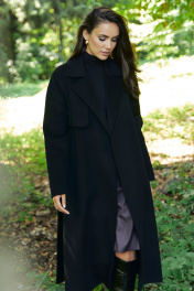 Пальто женское выполнено в классическом черном цвете, что делает его универсальной основой любого гардероба. Оно легко сочетается с деловой одеждой, повседневными образами и даже с вечерними нарядами. Черное пальто всегда было и остается символом утонченности. Пальто женское, прямого силуэта, из пальтовой ткани, на подкладке, со смещенной относительно центра переда застежкой на 3 пуговицы, (размер и цвет фурнитуры может незначительно отличаться от фото), предназначено для повседневной носки. Пальто со съемным поясом с пряжкой. Правая часть переда с отлетной кокеткой. Спинка со средним швом, шлицей и с отлетной кокеткой. Боковые швы с карманами и с настрочными шлевками по линии талии. Горловина оформлена широким воротником пиджачного типа. Правый борт переда с потайной суппатной застежкой на 3 петли. Рукава втачные, двухшовные, с широким припуском подгиба низа, позволяющим завернуть низ рукава наверх как отложную манжету. Средняя длина пальто по среднему шву спинки - 124,0 см (±2,0 см); Средняя длина рукава - 64,0 см (±1,5 см); Средняя длина рукава с завернутой манжетой наверх - 60,0 см (±1,5 см)