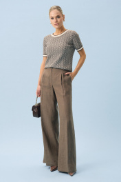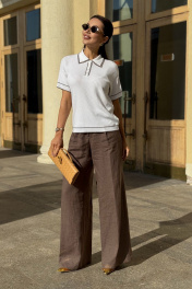 Льняные брюки женские палаццо URS - это легкая основа для весны и лета, когда хочется выглядеть собранно, но не чувствовать скованности. Модель сочетает классический силуэт, комфорт на каждый день и свежий белый цвет, который легко вписывается в деловой, повседневный и городской стиль. Брюки женские ЮРС, выполнены из костюмно-плательной ткани лен, для повседневной носки. В размерах 44,46,48,50 прямые от бедра, на обтачном поясе, с 5-ю шлевками, с застежкой на тесьму - «молнию», расположенную в среднем шве передних половинок. Пояс застегивается спереди на 1 пришивной потайной крючок, 1 петлю и 1 потайную пуговицу (размер и цвет фурнитуры может незначительно отличаться от фото). Передние половинки брюк, с односторонними складками, с боковыми наклонными карманами. Складки и карманы частично застрочены от пояса вниз. Задние половинки брюк с двумя парами талиевых вытачек. Брюки без заутюженных стрелок. Брюки женские, выполнены из костюмно-плательной ткани лен, для повседневной носки. В размерах 52,54,56,58 прямые от бедра, с притачным поясом, с резинками на уровне боковых швов, с 5-ю шлевками, с застежкой на тесьму - «молнию», расположенную в среднем шве передних половинок. Пояс застегивается спереди на 1 пришивной потайной крючок, 1 петлю и 1 потайную пуговицу (размер и цвет фурнитуры может незначительно отличаться от фото). Передние половинки брюк, с односторонними складками, с боковыми наклонными карманами. Складки и карманы частично застрочены от пояса вниз. Задние половинки брюк с двумя парами талиевых вытачек. Брюки без заутюженных стрелок. " 44 размер Длина по боковому шву с поясом - 110,0 см (±2,0 см), Ширина на уровне линии талии - 39,0 см (±1,0 см), Ширина на уровне линии бедер - 57,0 см (±1,0 см), Ширина брюк по низу - 33,0 см (±1,0 см), Ширина пояса - 4,7 см. 46 размер Длина по боковому шву с поясом - 110,0 см (±2,0 см), Ширина на уровне линии талии - 41,0 см (±1,0 см), Ширина на уровне линии бедер - 59,0 см (±1,0 см), Ширина брюк по низу - 34,0 см (±1,0 см), Ширина пояса - 4,7 см. 48 размер Длина по боковому шву с поясом - 110,0 см (±2,0 см), Ширина на уровне линии талии - 43,0 см (±1,0 см), Ширина на уровне линии бедер - 61,0 см (±1,0 см), Ширина брюк по низу - 35,0 см (±1,0 см), Ширина пояса - 4,7 см. 50 размер Длина по боковому шву с поясом - 110,0 см (±2,0 см), Ширина на уровне линии талии - 45,0 см (±1,0 см), Ширина на уровне линии бедер - 63,0 см (±1,0 см), Ширина брюк по низу - 36,0 см (±1,0 см), Ширина пояса - 4,7 см. 52 размер Длина по боковому шву с поясом - 110,0 см (±2,0 см), Ширина на уровне линии талии (резинка в поясе в растянутом виде) - 49,0 см (±1,0 см), Ширина на уровне линии бедер - 66,0 см (±1,0 см), Ширина брюк по низу - 37,0 см (±1,0 см), Ширина пояса - 3,2 см. 54 размер Длина по боковому шву с поясом - 110,0 см (±2,0 см), Ширина на уровне линии талии (резинка в поясе в растянутом виде) - 51,0 см (±1,0 см), Ширина на уровне линии бедер - 68,0 см (±1,0 см), Ширина брюк по низу - 38,0 см (±1,0 см), Ширина пояса - 3,2 см. 56 размер Длина по боковому шву с поясом - 110,0 см (±2,0 см), Ширина на уровне линии талии (резинка в поясе в растянутом виде) - 54,0 см (±1,0 см), Ширина на уровне линии бедер - 71,0 см (±1,0 см), Ширина брюк по низу - 37,5 см (±1,0 см), Ширина пояса - 3,2 см. 58 размер Длина по боковому шву с поясом - 110,0 см (±2,0 см), Ширина на уровне линии талии (резинка в поясе в растянутом виде) - 56,0 см (±1,0 см), Ширина на уровне линии бедер - 73,0 см (±1,0 см), Ширина брюк по низу - 38,5 см (±1,0 см), Ширина пояса - 3,2 см. "