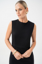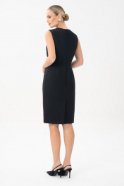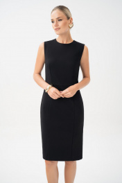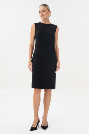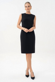Маленькое черное платье - это личный стиль и комфорт. Платье являются комплектом к жакету 25-641-1. Платье женское, полуприлегающего силуэта, отрезное по линии талии, без рукавов, выполнено из трикотажного полотна, предназначено для повседневной носки. Платье на отлетной по низу подкладке. Верхняя часть переда с талиевыми вытачками. Нижняя часть переда – с рельефными швами. Верхняя часть спинки с талиевыми вытачками, со средним швом, в котором обработана застежка на потайную ""молнию"". Нижняя часть спинки с вытачками и средним швом, заканчивающимся шлицей. Горловина и проймы обтачные. Горловина круглой формы. Средняя длина по шву спинки 102,0см. Тип ткани: трикотажное полотно.
