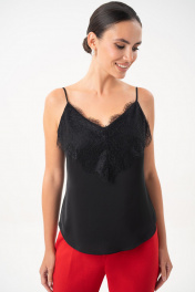 Топ с кружевом URS — это воплощение элегантности, женственности и безупречного вкуса. Такой топ станет универсальной базой в гардеробе современной женщины, которая ценит стиль и комфорт. Легкий и изысканный, он подчеркивает утонченность образа и гармонично вписывается как в деловой, так и в вечерний стиль. Блузка женская ЮРС, на бретелях, полуприлегающего силуэта, выполнена из блузочной ткани на подкладке, может быть как нарядная, так и повседневная. Перед с нагрудными вытачками, выходящими из боковых швов. Верхняя часть переда декорирована кружевом. Низ переда и спинки фигурной формы: короче у боковых швов, длиннее к центрам. "44 размер Длина посередине спинки - 38,5 см (±1,0 см), Длина по боковому шву - 37,0 см (±1,0 см), Ширина на уровне глубины проймы - 46,0 см (±1,0 см), Ширина на уровне линии талии - 44,0 см (±1,0 см), Ширина по низу - 51,5 см (±1,0 см). 46 размер Длина посередине спинки - 38,5 см (±1,0 см), Длина по боковому шву - 37,0 см (±1,0 см), Ширина на уровне глубины проймы - 48,0 см (±1,0 см), Ширина на уровне линии талии - 46,0 см (±1,0 см), Ширина по низу - 53,0 см (±1,0 см). 48 размер Длина посередине спинки - 38,5 см (±1,0 см), Длина по боковому шву - 37,0 см (±1,0 см), Ширина на уровне глубины проймы - 50,0 см (±1,0 см), Ширина на уровне линии талии - 48,0 см (±1,0 см), Ширина по низу - 56,5 см (±1,0 см). 50 размер Длина посередине спинки - 39,0 см (±1,0 см), Длина по боковому шву - 37,5 см (±1,0 см), Ширина на уровне глубины проймы - 52,0 см (±1,0 см), Ширина на уровне линии талии - 51,0 см (±1,0 см), Ширина по низу - 58,5 см (±1,0 см). 52 размер Длина посередине спинки - 39,0 см (±1,0 см), Длина по боковому шву - 37,5 см (±1,0 см), Ширина на уровне глубины проймы - 54,0 см (±1,0 см), Ширина на уровне линии талии - 53,0 см (±1,0 см), Ширина по низу - 61,0 см (±1,0 см). 54 размер Длина посередине спинки - 39,0 см (±1,0 см), Длина по боковому шву - 37,5 см (±1,0 см), Ширина на уровне глубины проймы - 56,0 см (±1,0 см), Ширина на уровне линии талии - 55,0 см (±1,0 см), Ширина по низу - 63,0 см (±1,0 см)."