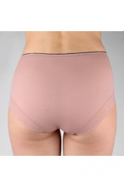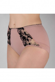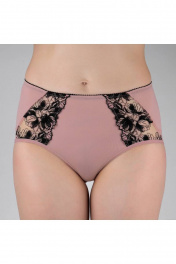 Трусы-слип из эластичного полотна, сетки и неэластичной вышивки. Высокая посадка. По верху настрочена эластичная тесьма 15мм.