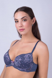 Бюстгальтер из эластичного полотна и эластичного кружева. На каркасах. Кружевная чашка с вытачкой на дубляже с эффектом пуш-ап. Отделка – бантик.