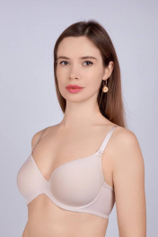 Бюстгальтер на каркасах с формованной чашкой "спейсер". Верхний срез чашки и пройма обработаны эластичной окантовкой. Чашка имеет боковую поддерживающую деталь. Стан из эластичного полотна.