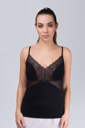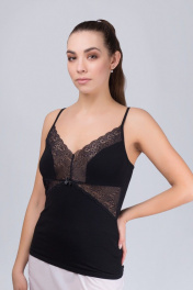 Майка из хлопка и кружева с узкими бретелями для повседневной носки Verally 353-1 черный
