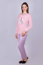 Домашняя пижама из трикотажа брюки и лонгслив в ярких тонах Verally 394-1 париж