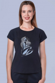 Майка из хлопкового полотна с рукавом реглан Круглогодичная Verally 431П-2 леди на чёрном