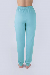 Брюки женские из футера(трехнитка). На переде имеются карманы, вход в карман обработан трикотажным полотном "кашкорсе". Брюки имеют высокую посадку. Низ брюк имеет манжету из трикотажного полотна "кашкорсе".
