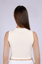 Топ из эластичного трикотажного полотна "лапша" без рукава. Горловина круглая. Длина изделия до талии.