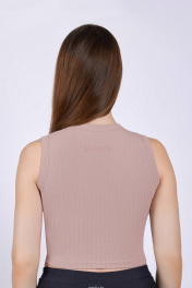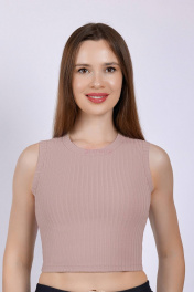 Топ из эластичного трикотажного полотна "лапша" без рукава. Горловина круглая. Длина изделия до талии.