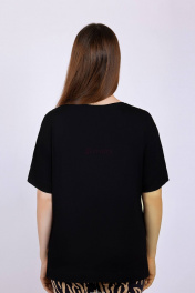 Джемпер женский из эластичного вискозного полотна, объемного силуэта. Декоративный элемент по переду в виде протянутого пояса и разрезами по боковым швам.