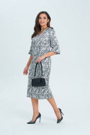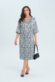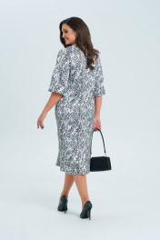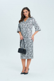 Нарядное женское платье выполнено из плательной ткани. Платье полуприлегающего силуэта, без подкладки Вырез горловины V-образный. Рукав ¾ фонарик.