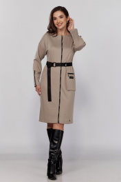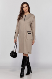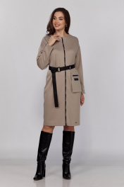 Бежевое длинное платье из трикотажа с поясом и декоративной тесьмой Verita 2332 беж