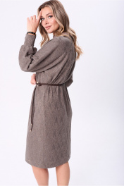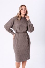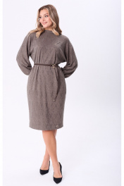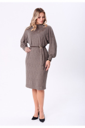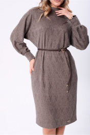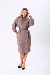Трикотажное платье свободного силуэта с рукавом летучая мышь. Рукав со складками на манжете, воротник стойка. Молния в среднем шве спинки. Платье без подкладки, в комплекте пояс из экокожи.