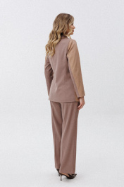 Комплект женский, двойка. Состоящий из жакета и брюк. Жакет прямого силуэта, на подкладке. Воротник пиджачного типа. По рельефу выполнены функциональные карманы. Втачной длинный рукав. Жакет застегивается на 2 потайные кнопки. Жакет с дизайнерским поясом. Брюки классические, прямого кроя. С карманами в боковых швах. По переду настрочной кант. Пояс на резинке.