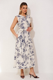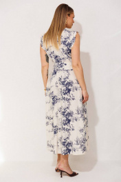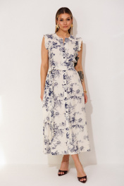Изящный летний сарафан из вискозной ткани. Сарафан А-образного силуэта с отрезной талией. По переду изделия планка на петли пуговицы. Горловина V-образной формы. Рукав “крылышко”. Пояс из основной ткани вставлен в боковой шов. В боковых швах функциональные карманы.