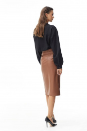 Деловая коричневая юбка-карандаш из эко-кожи Vesnaletto 3608 - фото 3