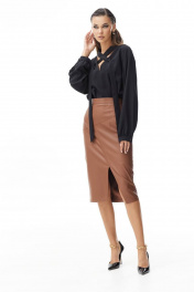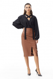Деловая коричневая юбка-карандаш из эко-кожи Vesnaletto 3608 - фото 2
