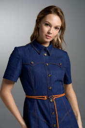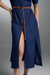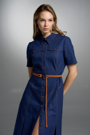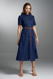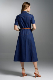 Приталенное джинсовое платье с пуговицами, кокетками и карманами VI ORO VR-1032 синий_дэним