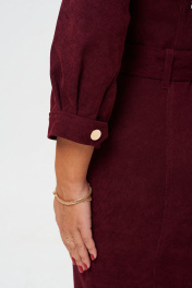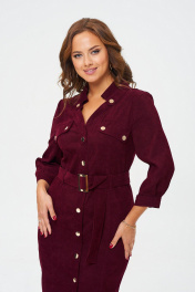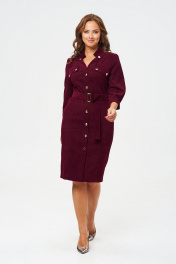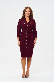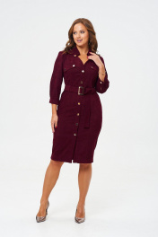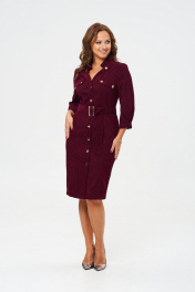 Платье женское полуприлегающего силуэта зауженное книзу. Центральная бортовая застёжка с планкой на кнопки. Полочка и спинка с рельефами и отделочными строчками. Полочка с накладными клапанами с застёжкой на кнопки. Воротник на отрезной стойке блузочного типа. Отлет воротника обработан планкой с застёжкой на кнопки. Рукав втачной одношовный. Низ рукава с манжетой и складками. Манжета с застёжкой на кнопку. Имеется навесной пояс с отделочной пряжкой. Для поддержания пояса имеются шлёвки.