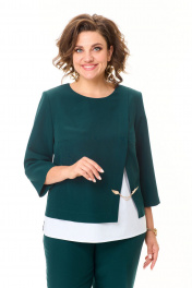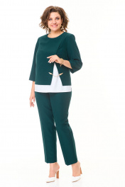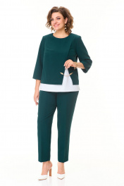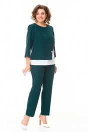 Комплект из блузона, брюк и топа с оригинальной отделкой VI ORO VR-1148 изумрудный