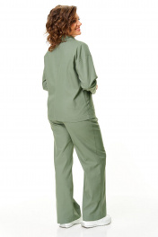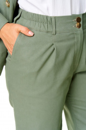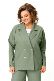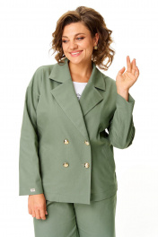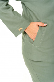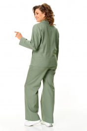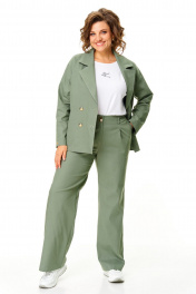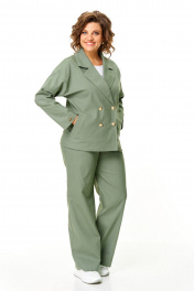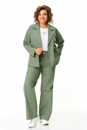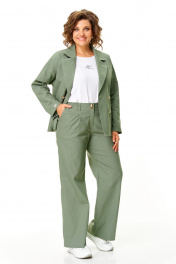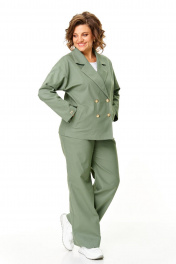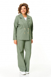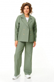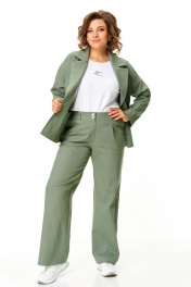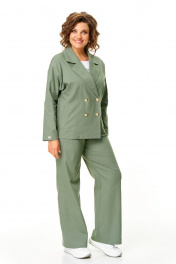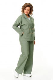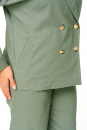 Комплект женский состоит из жакета и брюк. Жакет прямого свободного покроя со спущенной линией плеча.Застежка двубортная на золотые пуговицы.Воротник отложной пиджачного типа. Рукав длинный с отделочной нашивкой.По переду обработаны прорезные карманы с листочкой.Спинка со средним швом.Брюки свободного силуэта типа "палаццо" с защипами на передних половинкахЗастёжкой на молнию и петли-пуговицы.В боковых швах карманы с отрезным бочком.Пояс притачной с резинками по бокам.Отделочные строчки контрастного цвета.Вся фурнитура металлическая premium качества.