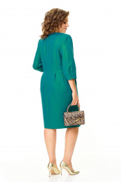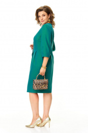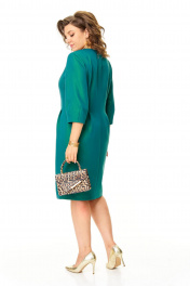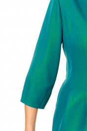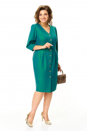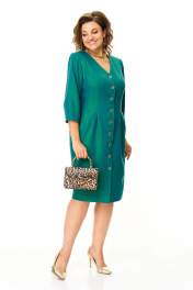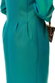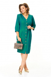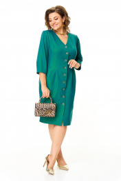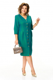 Платье полуприлегающего силуэта с естественной линией плеча.Спинка со средним швом и рельефами из проймы заканчивающимися складками.Перед рельефами из проймы заканчивающимися складками.Застежка центрально-бортовая на петли-пуговицы.Горловина V-образной формы.Рукав втачной одношовный длиной 3/4.По низу рукава выполнены вытачки.Низ рукава обработан обтачкой.