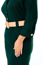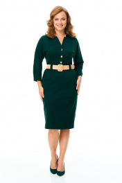 Платье женское полуприлегающего силуэта, заужено к низу.Рукав цельнокроеный типа "летучая мышь" длиной 3/4. Низ рукава обработан притачной манжетой с застежкой на петлю-пуговицу.Горловина обработана блузочным воротником на отрезной стойке.Спинка со средним швом и вытачками.Средний шов спинки с застежкой на тесьму-молнию и шлицей.Перед, до линии талии, с однобортной застежкой на петли-пуговицы.Имеется отделочный навесной пояс контрастного цвета.Для поддержания пояса на линии талии обработаны шлёвки.По переду обработаны карманы с отрезным бочком.