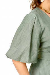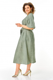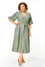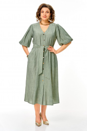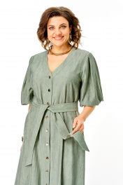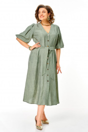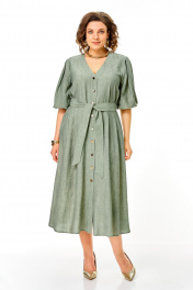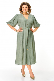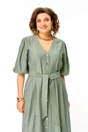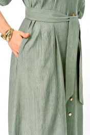 Платье женское свободного покроя с легким расклешением к низу и естественной линией плеча.Рукав втачной. Перед с отрезной планкой, застежкой на петли-пуговицы. В боковых швах обработаны карманы.