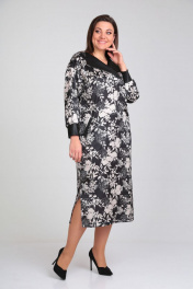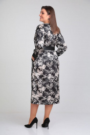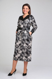 Платье с контрастным принтом и эко-кожей с поясом VIA-Mod 534