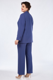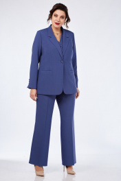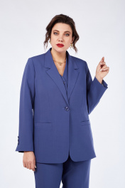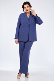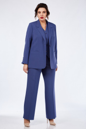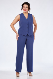 Костюм женский 3-х предметный, полуприлегающего силуэта. Состоит из жакета и жилета на подкладке и брюк. Жакет с воротником пиджачного типа, центральной застёжкой на 1 петлю и 1 пуговицу. Перед с рельефными швами от пройм до низа и талиевыми вытачками и прорезными карманами с листочками с втачными концами. Спинка со средним швом. Рукав втачной, двухшовный, длинный со шлицей. Жилет с рельефными швами от пройм до низа по переду и спинке, с центральной застёжкой на 4 петли и 4 пуговицы. Перед с прорезными карманами с листочками с втачными концами. Брюки с застёжкой на тесьму "молнию" в средних срезах передних половинок, с притачным поясом на 1 петлю и 1 пуговицу и резинкой по задним половинкам, с карманами наклонными к боковым швам. По передним и задним половинкам заутюженные канты. Длина жакета по спинке - 71 см. Длина рукава - 61 см. Длина жилета по спинке - 54 см. Длина брюк по боковому шву - 101 см.