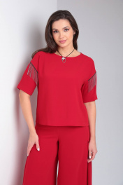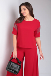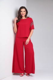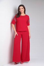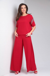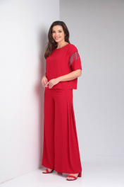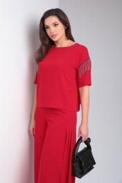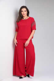Костюм из блузы и брюков с разрезами и тесьмой Vilena 944 красный