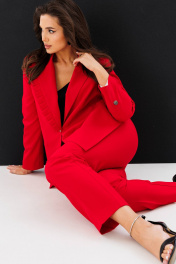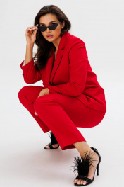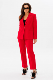 Деловой костюм из текстиля: жакет и брюки с асимметричным лацканом Vilena 974 красный