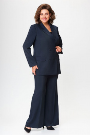 Модный женский костюм — выбор тех, кто стремится выглядеть презентабельно в любой ситуации. Идеален не только для офиса и деловых встреч, но и для торжественных мероприятий. Сейчас актуальны комплекты свободного кроя, не сковывающие движения. Широкие и длинные брюки — горячий тренд осенне-зимнего сезона, который можно носить всегда. Выбор остается за вами! Жакет прямого силуэта, на подкладке, полочка двубортная с застежкой на петли и пуговицы с прорезными карманами с клапаном. Спинка со средним швом и вертикальными рельефами. Рукав втачной, двухшовный.Брюки полной длинны, со стрелками. В области бедер брюки полуприлегающие, в колене и по низу свободные. По передним половинкам выполнены наклонные карманы и застежка на молнию в среднем шве. По задней половине обработаны талиевые вытачки. Брюки на притачном поясе с эластичной тесьмой и застежкой на петлю и пуговицу.