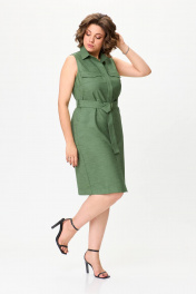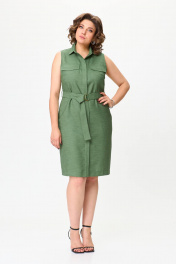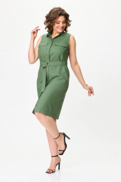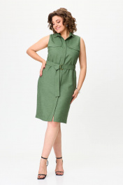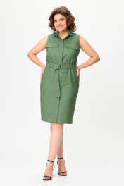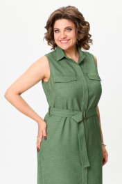 Летнее платье из льна с пуговицами и съемным поясом VIPPRIMO 109 зеленый