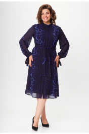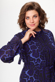 Шифон – материал удивительной красоты и легкости, который способен создать загадочный, женственный и волшебный образ. Модный принт и цвет, простой крой, интересные детали сделают обладательницу платья элегантной и неотразимой! Полочка платья с центральной на петли и пуговицы по притачным планкам. Лиф платья отрезной по линии талии. Полочка с нагрудными вытачками. Горловина круглой формы, обработана воротником-стойкой. Спинка лифа с талиевыми вытачками. Юбка платья формы “колокол”. В области талии по боковому шву настрочены шлевки через которые продет пояс. Рукав втачной, одношовный, длинный. По низу рукав со сборкой на притачной манжете с завязками. Платье на подкладке.