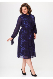 Демисезонное платье из текстиля с поясом и сборками VIPPRIMO 112 темно-синий