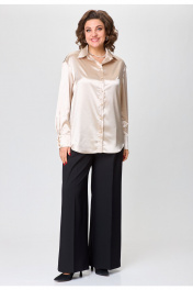 Демисезонная атласная блузка с нагрудными вытачками и воротником VIPPRIMO 116 песочный