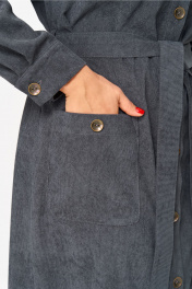 Платье-рубашка из вельвета - это элегантный и стильный элемент гардероба, который можно успешно сочетать с различными вещами. Модель выполнена из качественного однотонного вельвета с характерным рубчиком и прекрасно подходит как для демисезонного периода: весна, осень, так и для холодной зимы. Его легко адаптировать для любого повода при помощи аксессуаров, а также можно носить разными способами (например, как легкое пальто). Соответственно, главный критерий — это возможность носить эту вещь либо как платье, либо как легкий второй слой. Мягкая ткань делает изделие приятным к телу, обеспечивая тепло и уют в прохладную погоду. Она отлично держит форму даже после многочисленных стирок. Платье с застежкой на пуговицы , длиной миди, дополнено съемным поясом, который подчеркивает фигуру и делает силуэт более женственным. Спинка с отрезной плечевой кокеткой и центральной бантовой складкой. Длинные рукава с манжетами на пуговицах и воротник рубашечного типа гармонично дополняют классический фасон. Накладные карманы добавляют удобства в носке.