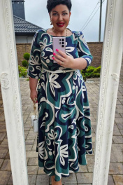 Эффектный и незабываемый образ создаст Вам это платье! А яркий необычный принт не позволит остаться незамеченной. Почувствуйте себя в нём королевой! Платье прилегающего силуэта, отрезное по талии, лиф с фигурным вырезом горловины нагрудными и талиевыми вытачками. Рукав в платье втачной, одношовный, длиной ¾. Спинка с талиевыми вытачками. Юбка в платье трапециевидной формы с карманами в боковых швах. В боковом шве платья застёжка на молнию. В качестве дополнительного элемента к платью идёт декоративный ремень. Обращаем Ваше внимание, что фурнитура может незначительно отличаться от фото. Длина платья от высшей точки плечевого шва до низа 128 см (р 50-54), 129 см (р 56-60). Длина рукава 40 см. платье 50 52 54 56 58 60 обхват груди 106 110 114 118 122 126 обхват талии 94 98 102 106 110 114 обхват бедер ширина рукава вверху 38 40 42 44 46 48
