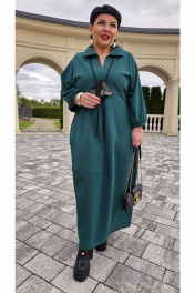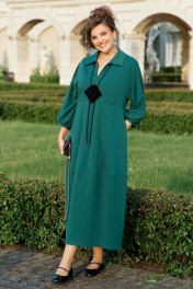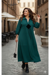 Представляем вашему вниманию элегантное платье миди в насыщенном чёрном оттенке, который актуален в любом сезоне. Выполненное из мягкой, струящейся ткани, оно обеспечивает приятные ощущения при носке и безупречную посадку. Свободный крой платья напоминающий собой форму «купола» слегка заужается к низу придает силуэту изящество и позволяет ему деликатно ниспадать по фигуре. V-образный вырез горловины, дополненный отложным воротником, придает платью классический и в то же время современный вид. Линия талии завышенная, лиф платья двойной, со средним швом. Рукав в платье цельнокроеный со сборкой на манжету, добавляют образу непринужденности и объема. Горизонтальный шов, расположенный примерно на уровне бедер, создает интересный структурный акцент. В боковых швах карманы. В качестве дополнительного декоративного элемента в комплекте с платьем идёт украшение ручной работы. Длина платья 125 см., длина рукава 62,5 см (р 52-56), 64,5 см (р 58-62). Платье 52 54 56 58 60 62 обхват груди 112 116 120 124 128 132 обхват бедер 136 140 144 148 152 156 обхват талии 104 108 112 116 120 124 длина по спинке 125 125 125 125 125 125