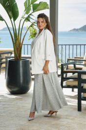 Юбка «полусолнце» в длине миди с жатой фактурой — это сочетание лёгкой драматичности и непринуждённой элегантности. Её силуэт создаёт мягкую визуальную волну, а жатая поверхность превращает каждый изгиб в игру света и тени: она одновременно утончённая и характерная, романтичная и по-городски современная. Из-за сжатой фактуры ткани юбка выглядит живой и объёмной. Юбка силуэта полусолнце , длины «миди» с притачным поясом на эластичной тесьме-резинке. Крой юбки уравновешивает визуально бёдра и создаёт плавный силуэт. Длина юбки 96 см. Юбка 52 54 56 58 60 62 обхват талии 84/112 88/116 92/120 96/124 100/128 104/132 обхват бедер 148 152 156 160 164 168